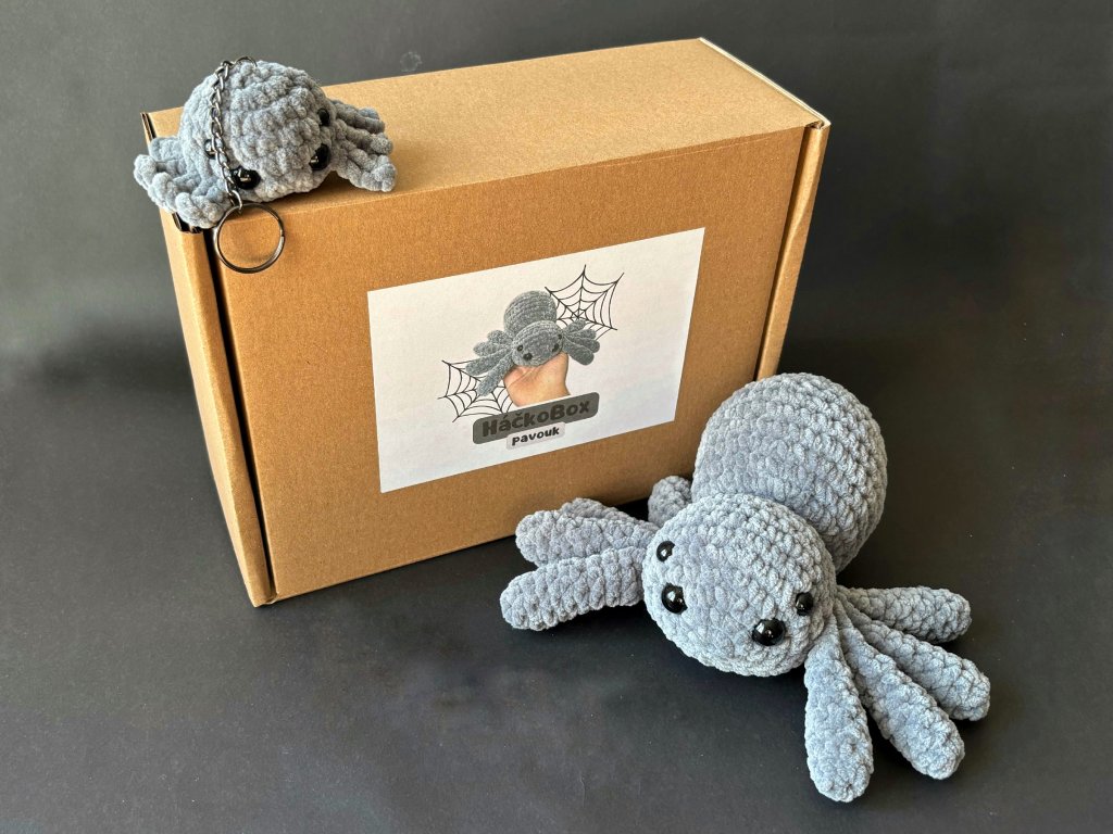Hotový výrobek není součástí balení - jedná se pouze o “udělej si sám” sadu s materiálem k uháčkování pavouka a klíčenky 🕷️