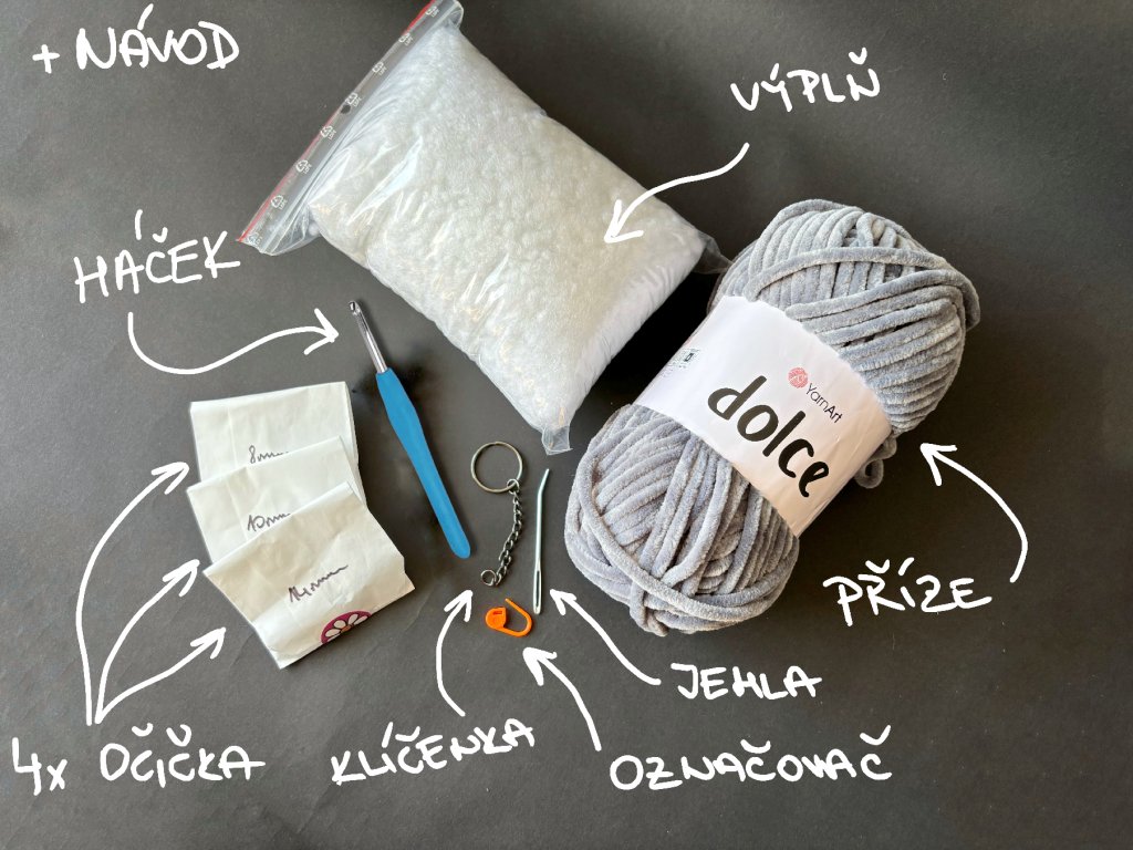 - Veškerý materiál na uháčkování obou pavouků - přízi, výplň, oči, klíčenku