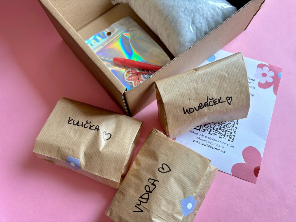 Tento HáčkoBox obsahuje nejen materiál na tři roztomilé plyšáčky - kuličku, mini vydru a houbáčka, ale také veškeré potřebné pomůcky pro háčkování - háček, jehlu, označovač, a samozřejmě psané i video návody!
