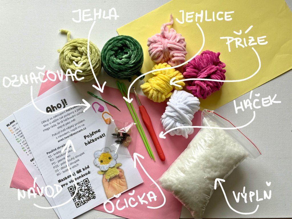 - Veškerý materiál na uháčkování dvou květin - přízi, výplň, oči