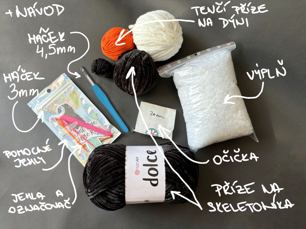 - Veškerý materiál na uháčkování SkeleToníka - přízi, výplň, oči
