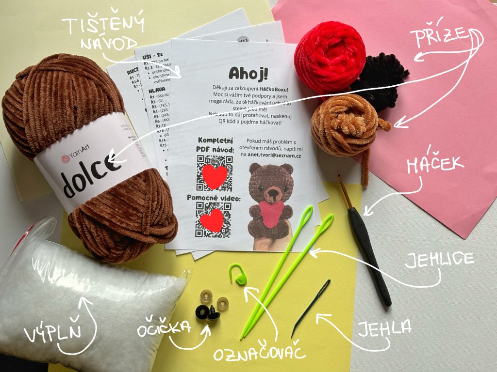 Hotový výrobek není součástí balení - jedná se pouze o “udělej si sám” sadu s materiálem k uháčkování medvídka 🧸