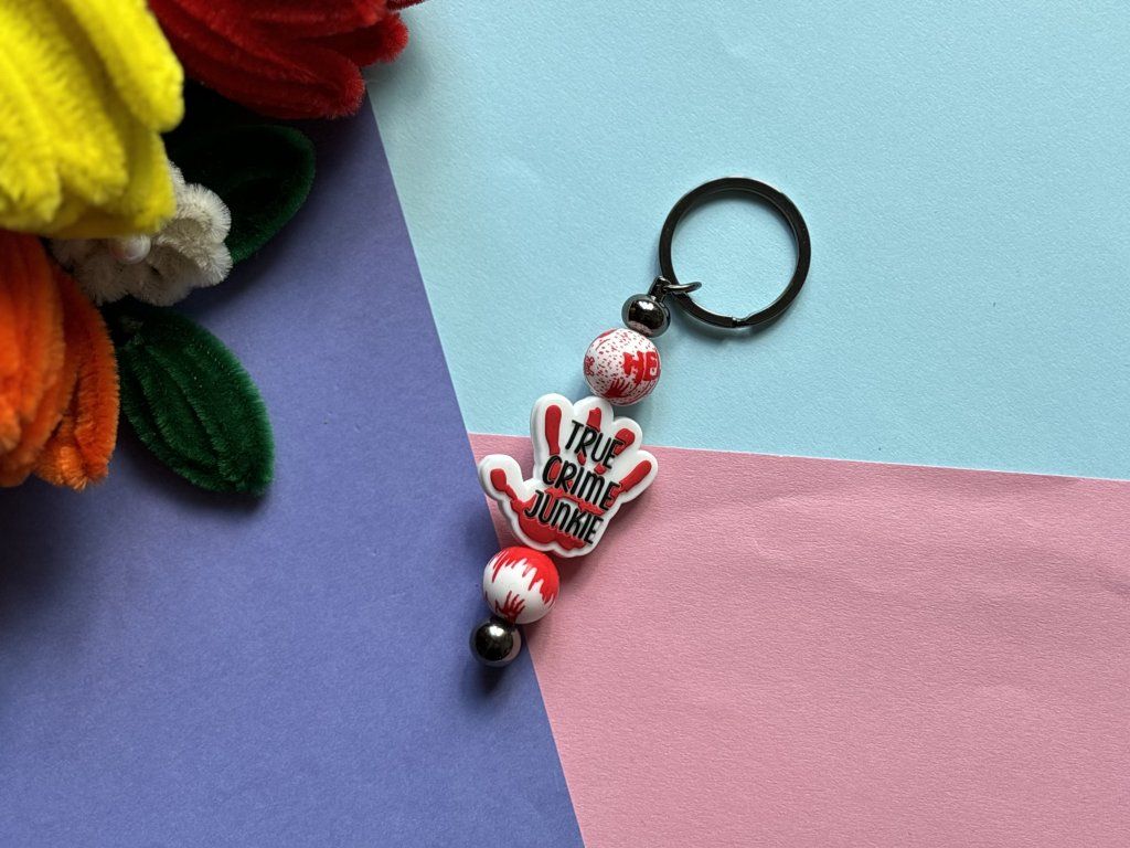 Ozdobná klíčenka se silikonovými korálky a kroužkem. Délka včetně kroužku cca 12cm