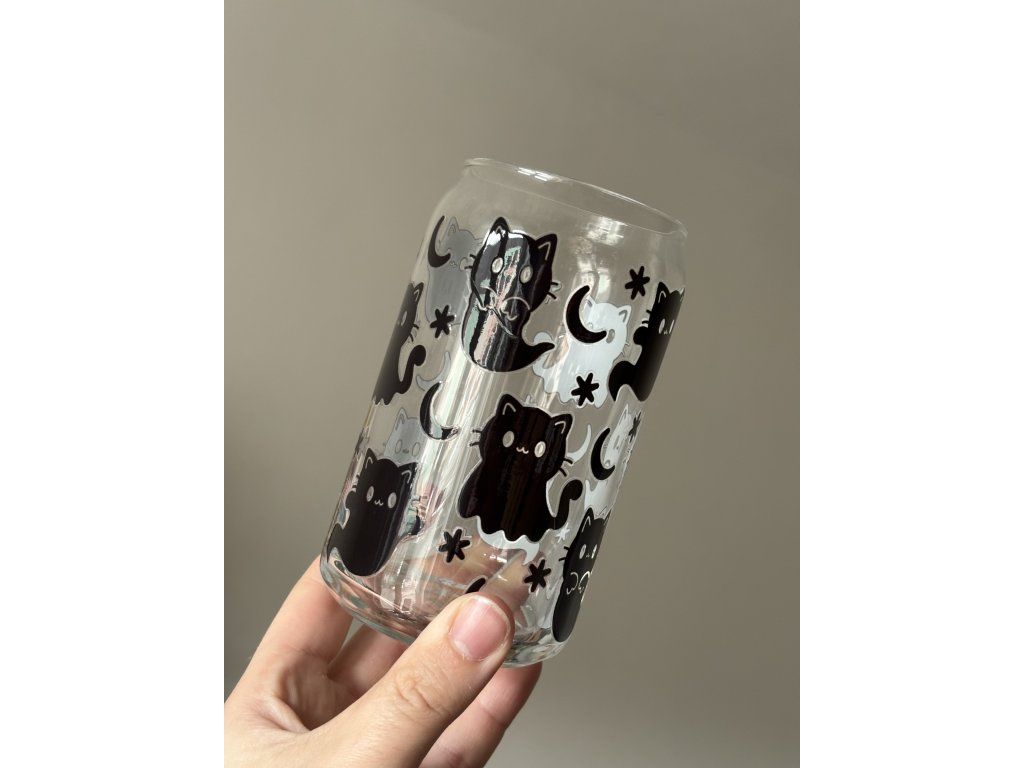 Krásná sklenička ve tvaru plechovky s ručně lepeným polepem.