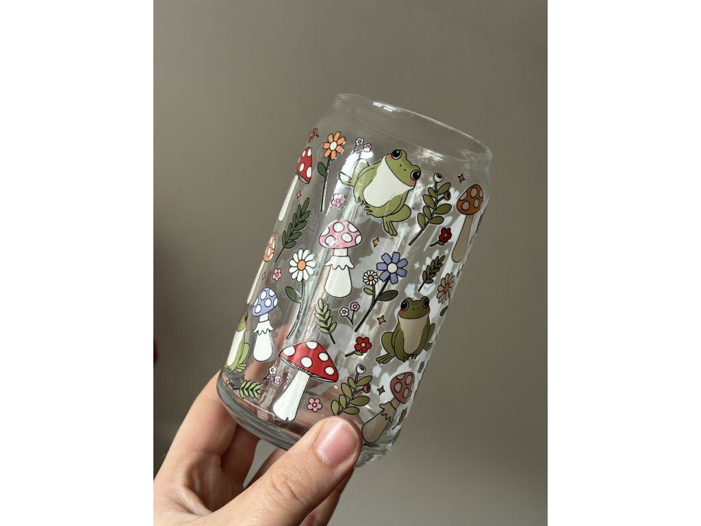 Krásná sklenička ve tvaru plechovky s ručně lepeným polepem.