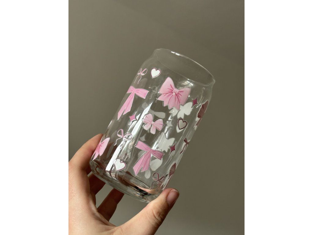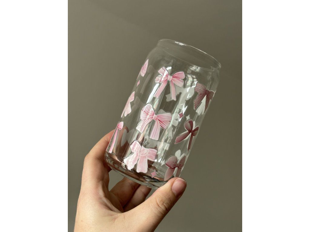 Krásná sklenička ve tvaru plechovky s ručně lepeným polepem.