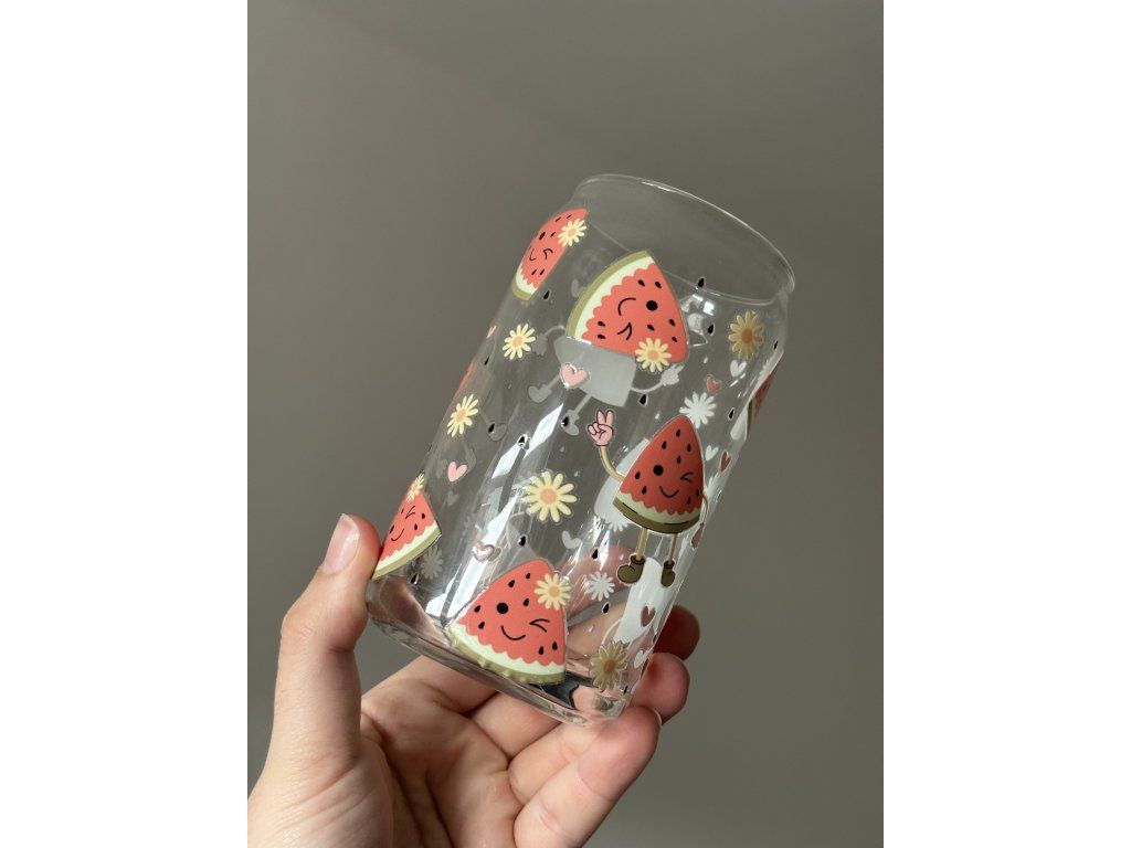 Krásná sklenička ve tvaru plechovky s ručně lepeným polepem.